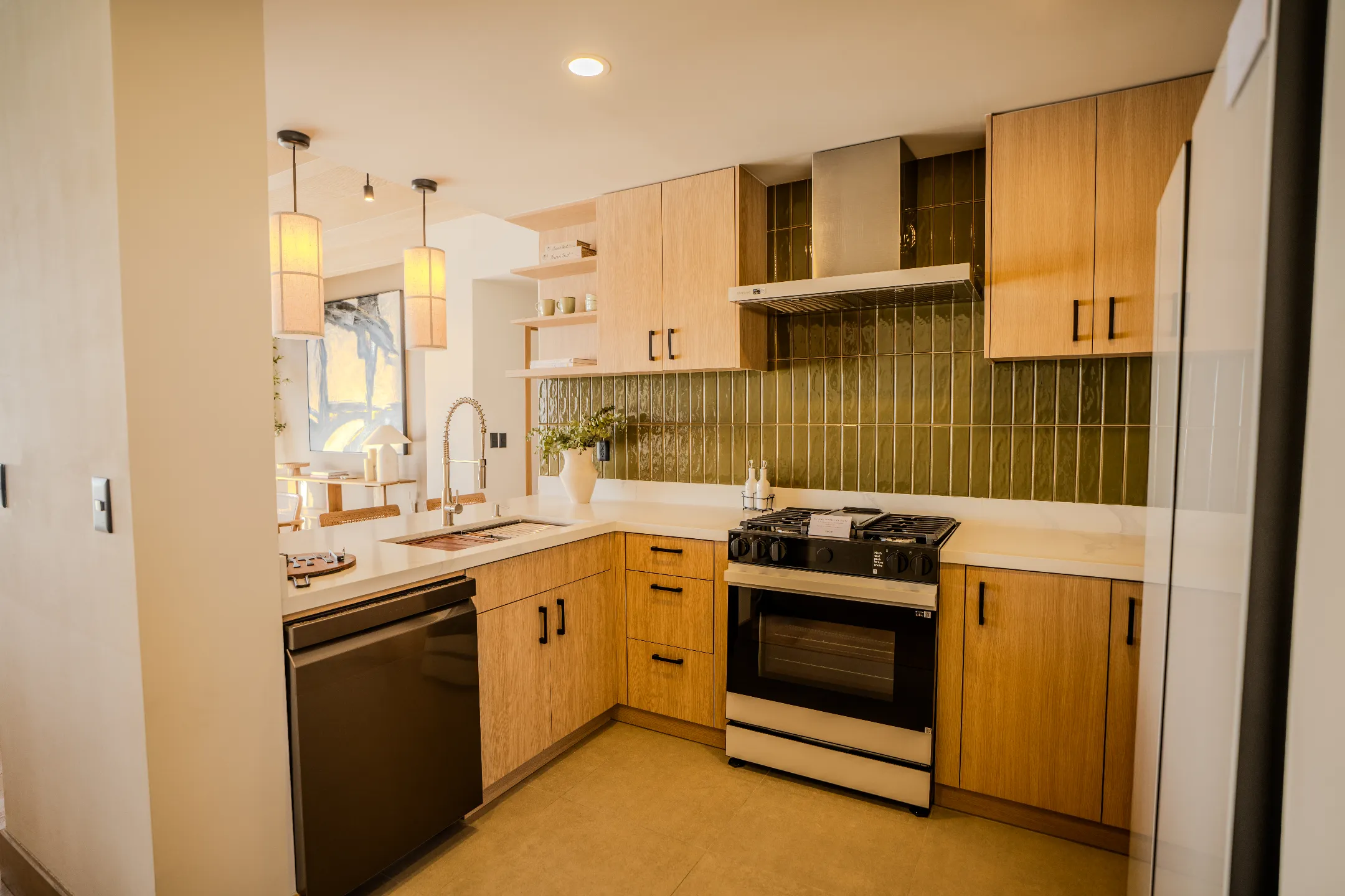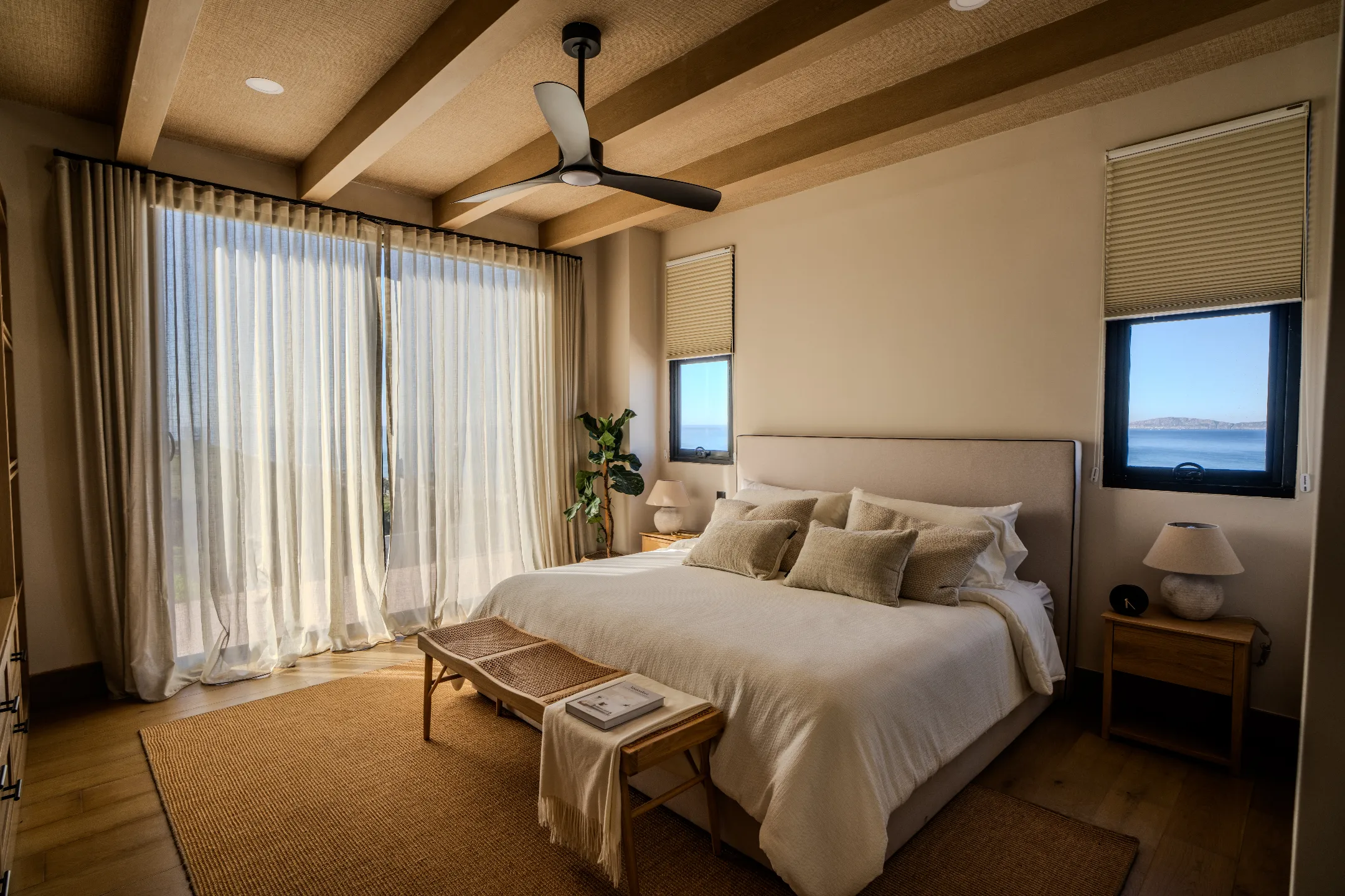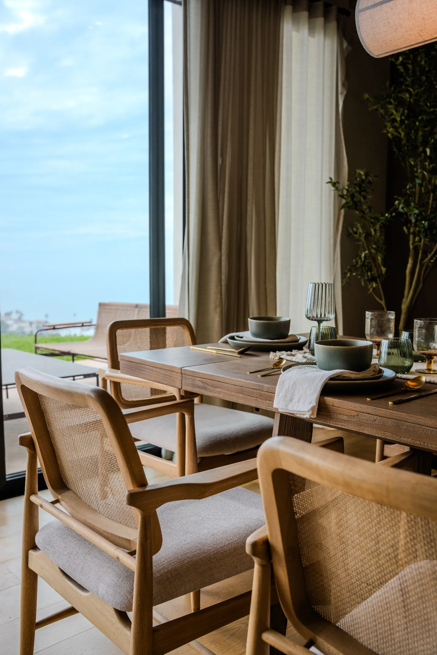 Interiores que maximizan la entrada de luz natural y ventilación cruzada, con acabados de alta calidad: madera, piedra y paleta neutra.